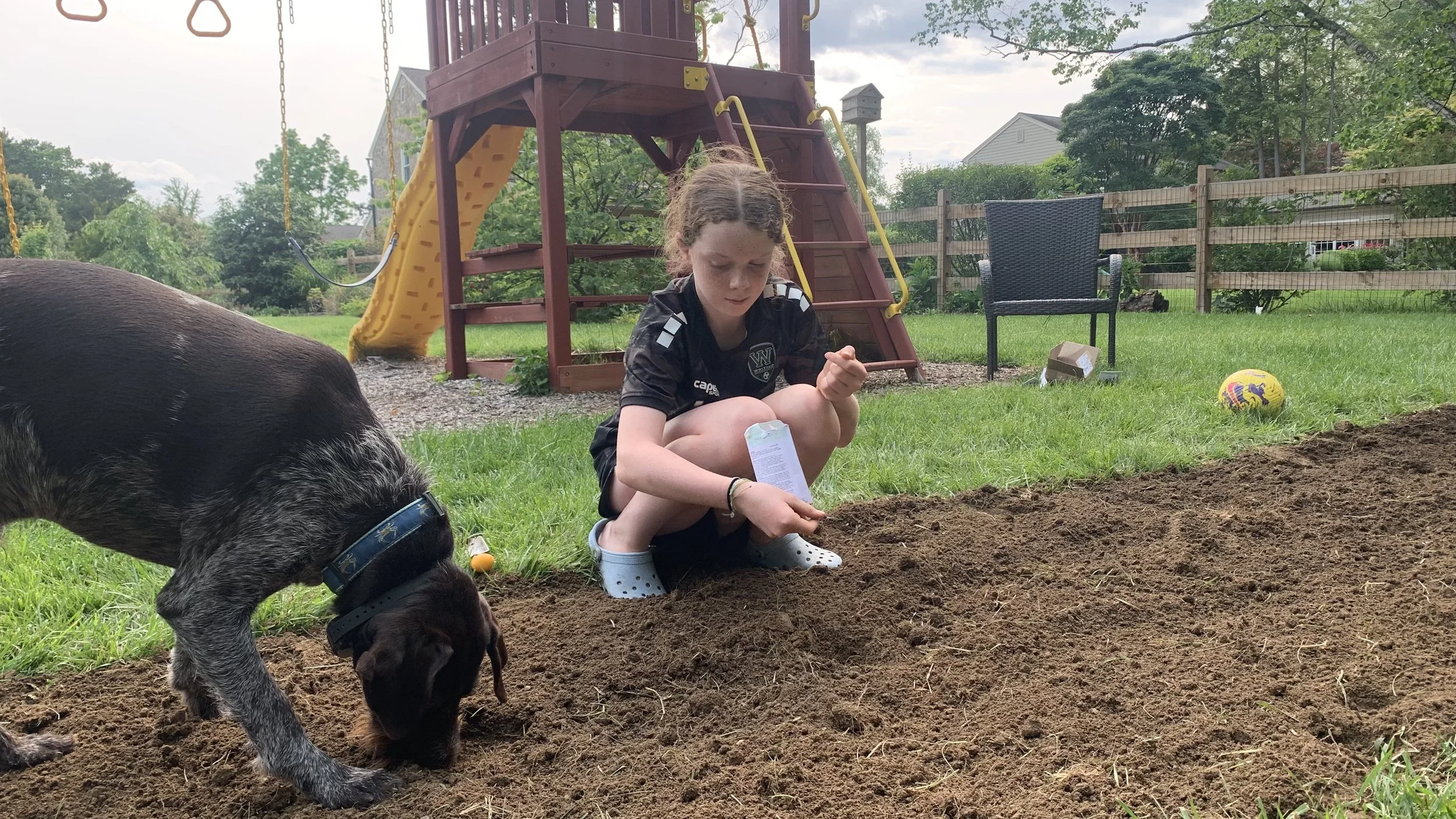 We gave it a little extra compost love to help the soil stay rich and ready, and Brynn was in charge of spacing out the seeds “just right” (with a little help from Otto, who may or may not have sat in the middle of the row).